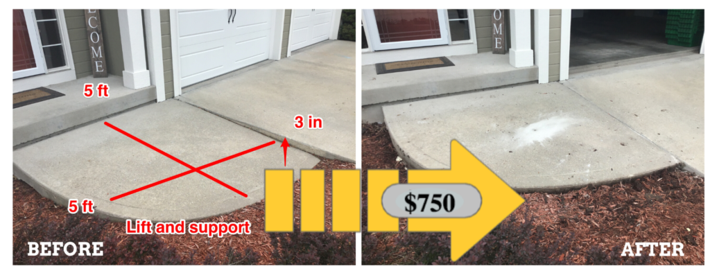 Water pooling near garage or front door: Leveling corrects pitch and prevents future moisture intrusion.